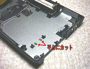 《削る》 ◆ 底ケースの出っ張っている所を2ヶ所削る。 |