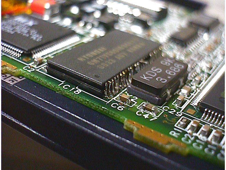 から半田付けする。(画像1参照) なお、隣の水晶振動子との間隙が狭いので、半田ブリッジした場合は半田吸取り線で除去してから再半田